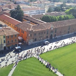 ピサの斜塔には、螺旋階段を上がっていきます。昇りきると想像していたよりも傾いているような感じでした。斜塔からの街並み・屋根の連なりがとても印象深く満足のいく旅でした。
