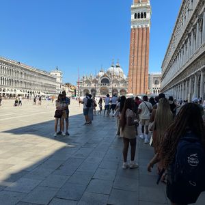 サン・マルコ広場、宮殿、ため息橋、有名な本屋さん、ヴェネチアの建物について(現地の人しか知らないような)です。グルメについても各所を回ってる移動の際に教えてくれました。ゴンドラも事前に予約していただいており、乗り場に長い列が出来ている中をスキップして乗船できました。ゴンドラの貸切に乗れた時はこのツアーを申し込んで本当に良かったと改めて思いました。気になる点を上げるとしたら滞在時間が少ないので、寺院や宮殿や美術館の中に入る時間が無いことです、、こればっかりはしょうがないですがそこだけマイナス⭐︎1つで。