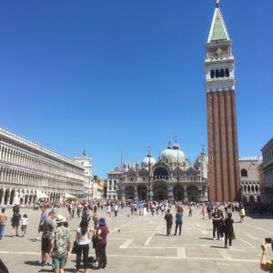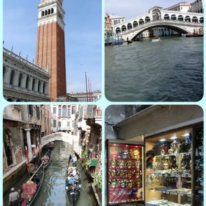 フリープランで観光しました。リアルト橋を通り、サン・マルコ寺院に向かいました。サン・マルコ寺院に入り観光後、高さ96.8mの鐘楼の上に登りました。ここから見るヴェネツィアの風景は格別でした。その後ゴンドラ乗り場に向かいゴンドラに30分乗ってゆったり時間を楽しんだ後、サン・マルコ広場でカフェ、お土産を買い、夕陽の綺麗な風景の中、駅に向かうという分刻みのスケジュールだったけどめちゃくちゃ良かった。