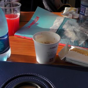 ベネツィアへの移動はほぼ自力ですが、簡潔でわかりやすいスケジュールのおかげで無事に着くことができました。行く前は本当に行けるのか不安でしたし、最低でも10分前には掲示板に表示されると言う乗り場が2分前になっても表示されず。何か見落としているのか⁉︎かなり焦りましたが、1分前に「10分」遅れている表示がでてほっとしました。(帰りは乗ってから25分止まりましたが、誰一人イライラしている様子もなく平和そのものです)せっかくなので1等席を予約しましたが、席も広いし静か‼︎チップかクッキーのお菓子、水をボトルで。ドリンクの配布もありました。2等席から大量の荷物を持った元気いっぱいの様子を伺うと、次も絶対に1等席にしようと思いました。
