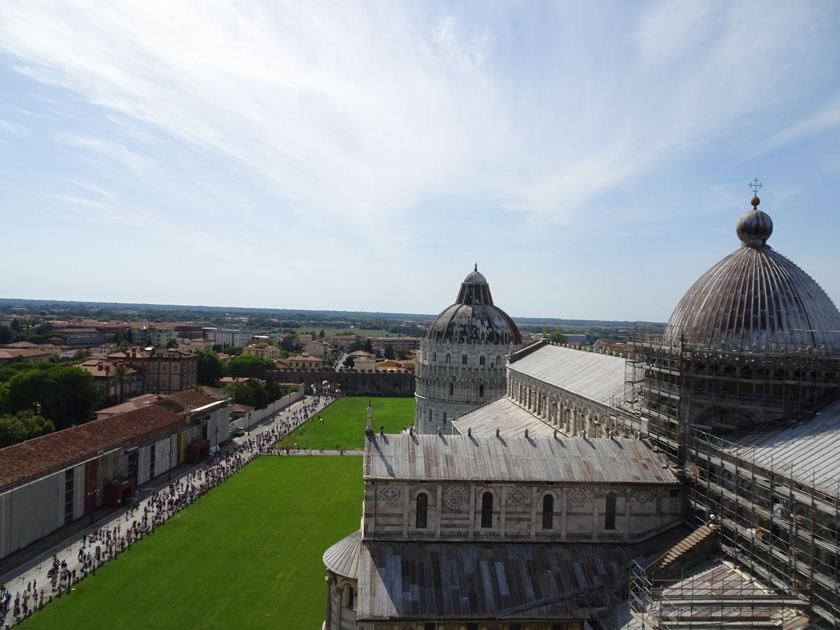 フィレンツェの街もピサもとても暑く心配しましたが年寄りでも難なく若い人たちについていけて自信がつきました。ピサの斜塔にも少し立ち止まったものの一番上まで登れてうれしかったです。フィレンツェはどの施設も大混雑で並んでいても横入りする人がいたりしましたが、ガイドさんが負けじと抗議して入らせないようにしてくれたことは豊富な知識に基づいたガイドぶりと
