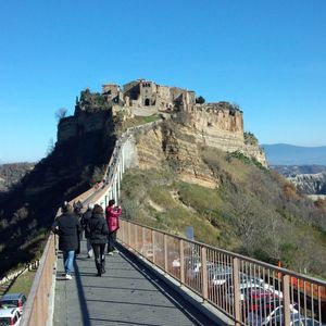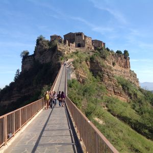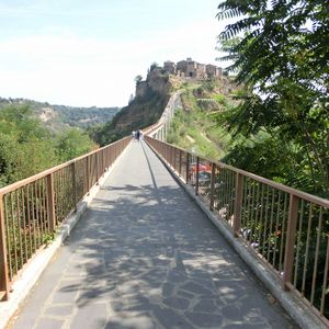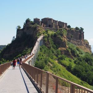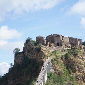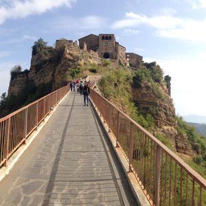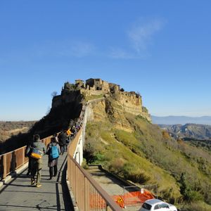 チヴィタはマイカーや団体で観光客が多かったですが、橋の所まで車で行けたのがすごく良かったです。駐車場から歩くと、高低差も距離もあり大変そうでした。橋自体も高低差があるのでこれだけでも大変で、風が強いです。