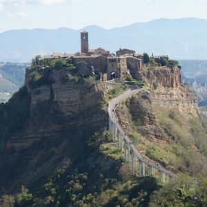 チヴィタは外からみると、ほんとに浮いてる天空都市のよう。