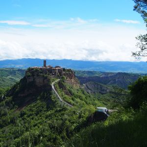 チビタ村は天空の城ラピュタのモデルとなったというだけあって、その姿は今までみたことのないもので、よくあんなところに村ができたなと驚きました。景色もとてもすばらしかったです。村の中に入るのに橋を上っていくのは少々大変でしたが村の中には、小さなレストランやお土産屋さんがあって、オリビエート地方のオリーブオイルなどを安く買うことができてよかったです。ボマルツオ怪物公園は歩いて1時間もあれば十分まわれる位でした。なんであんな石像をつくったのかと少々不思議でしたが一度は見てみてもよいかと思います。オリビエートの街で有名なイノシシのソーセージやトリフのパスタなどガイドさんが注文を手伝ってくれ、ゆっくりとランチの時間をとってもらえたし、中世の町を十分楽しめました。もう少し居たかった位です。せっかくローマにいくなら、街だけでなく郊外に是非いってみては!おすすめツアーです!
