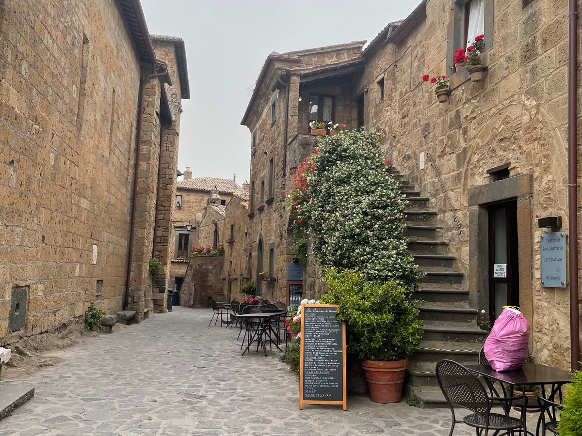 チヴィタは予約がないと現地の小型バスに乗れず、猛暑の中を延々と歩くことになるので、ツアー参加は必須。坂道は結構しんどいので、年配の方、子供連れは休み休み登ってください。