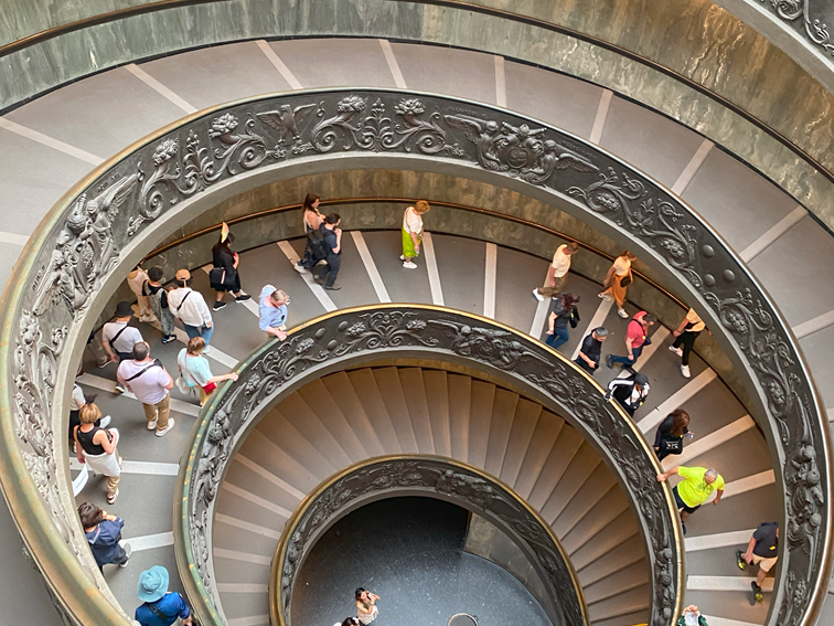 美術館はとにかく広大で、ご案内頂くポイント以外にも古代の素晴らしい彫刻が階段やホールにゴロゴロと展示されていて凄かった。まさかのコンクラーベ期間でシスティーナ礼拝堂に入れなかったのが忘れられない思い出です。代わりにたくさん案内してくれたガイドさんに感謝です🙏