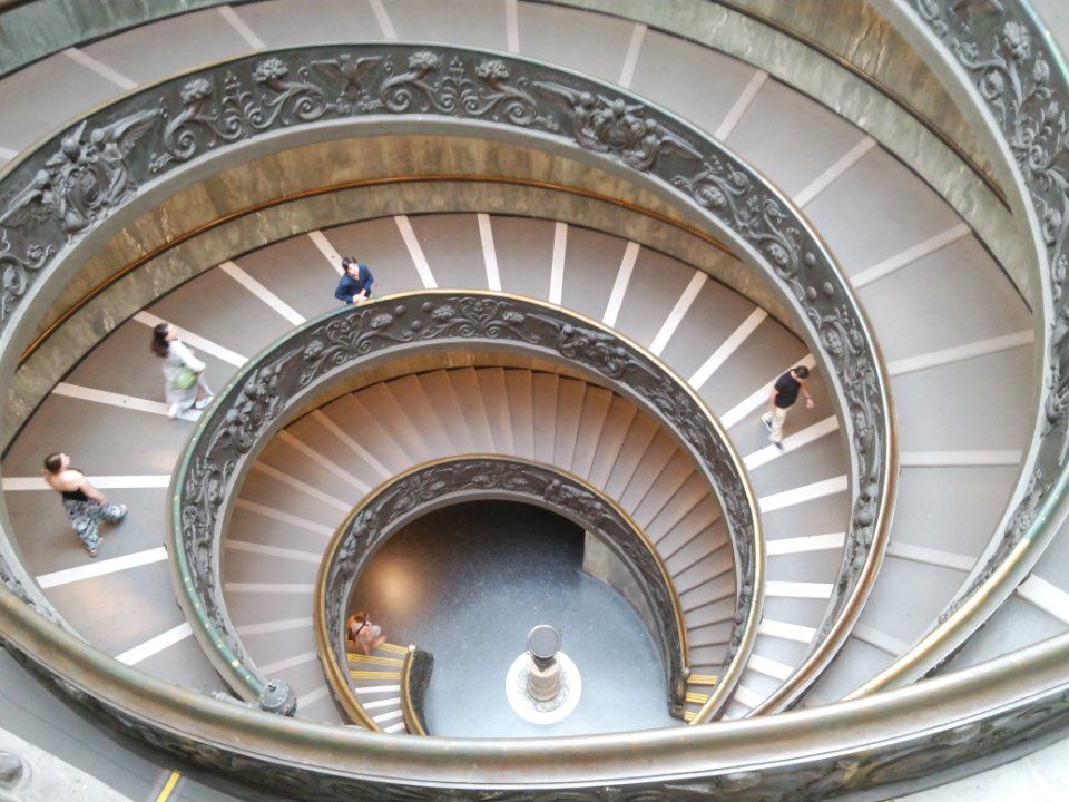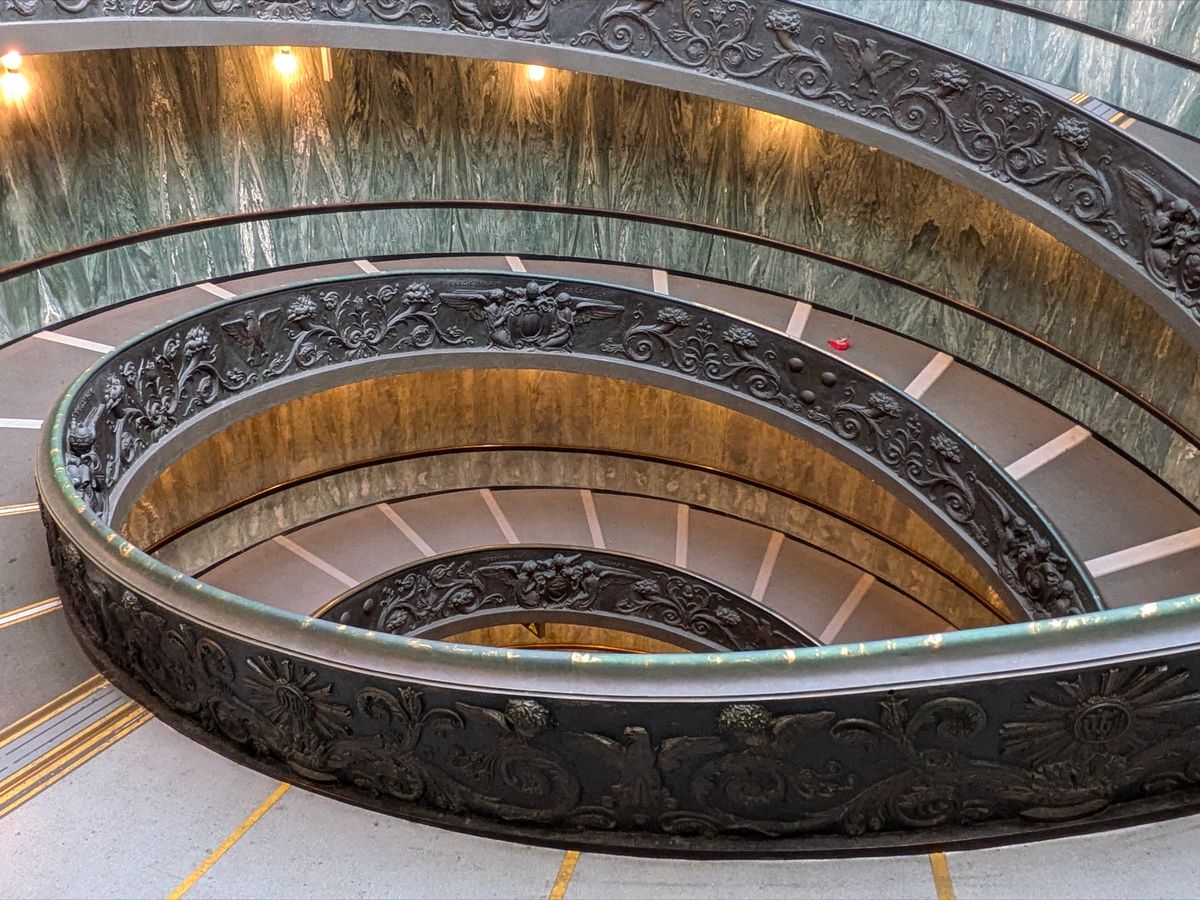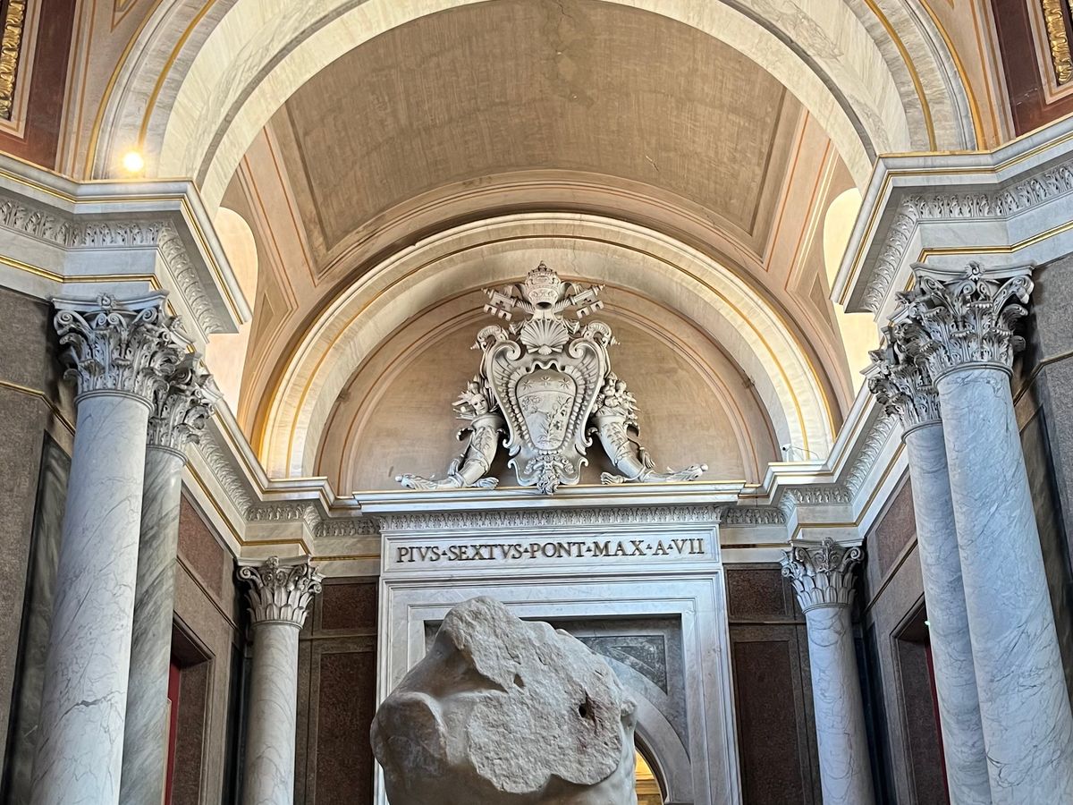 一番の見どころはやはりラファエロの間とシスティーナ礼拝堂。(システィーナ礼拝堂は写真が撮れません)。ラファエロの間で観た壁画「アテナイの学堂」には、たくさんの偉人が描かれていることを教えていただき、興味深かったです。システィーナ礼拝堂のミケランジェロ作「最後の審判」はやはり圧巻でしたが、彫刻に専念したいミケランジェロが嫌々描き上げたのだと後から知ってびっくりしました。壁画を描く大変さも説明していただき、この時代にこれだけの作品を描き上げた人々の凄さを改めて感じさせられました。