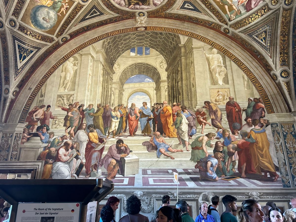すべてが素晴らしい中で、ラファエロの「アテナイの学堂」を近くからじっくり鑑賞できたこと、そして何よりも「最後の審判」に加え多くの天井画が描かれているシスティーナ礼拝堂は圧巻でした。礼拝堂の中では十分時間があり、撮影不可であった分、目にしっかり焼き付けることができました。入場後にガイドの方から様々な事前レクがあったおかげで感動も倍増でした。