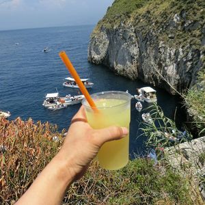 高速船でカプリ島到着後、10名程度乗れるフェリーで青の洞窟付近まで向かう。