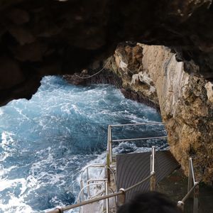 洞窟の中から、外の方を見ると、絶句するくらいの青さ。これは凄い!