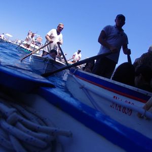 ・カプリ島到着後は、20名程度乗船できる大きな船に乗り換え、最終的には、4名程度の小さな船に乗って、青の洞窟へ。