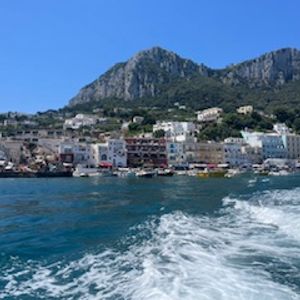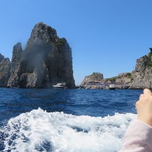 カプリ島まで高速船で50分!いい天気だったので、もしかして洞窟に行けるかも????と・・・でも前日までの雨で水位が上がっているため、洞窟まで行けませんでした。がっかり・・・!!気を取り直して、カプリ島散策!空気は最高、景色もよかったです。