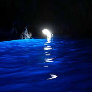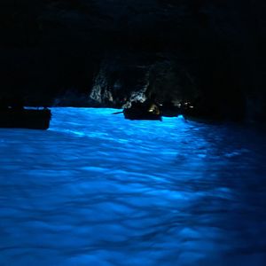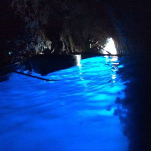 カプリ島にある青の洞窟は、風や波の影響や、季節によっては入船出来ないそうです。洞窟に入り美しいブルーを見る事ができラッキ〜でした。狭い入り口を入ったらすぐ入り口の方を振り返って写真を撮るのがポイントです。