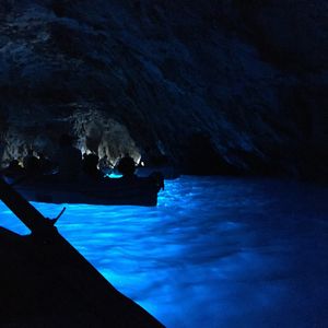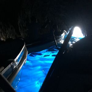 初挑戦で入れました。あの青さは言葉では表せず、ただただ感動でした。カプリ島に到着後、バスで行く方法と小型船で移動する方法があるようですが、ガイドさんが混雑具合を確認、より早く入れそうな小型船で洞窟の前まで行きました。中に入るまで、30分くらいは待ちましたが、海の様子も綺麗で、苦になりませんでした。小型船から手漕ぎボートに乗り換え、中に入りました。とても綺麗で、もっと見ていたい、と思っていたところ、ボートを漕いでいる船頭さんがいくらか良くわからないスペシャルチップを要求、それに応えると中で2周してくれました。(結局、ガイドに言われたチップ以上は払いませんでしたが・・・)