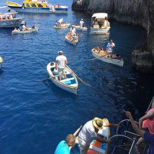 青の洞窟は、午前中の方が入れる可能性が若干高く、ただし午前中の方がすごく混むらしいという情報でした。カプリのみのツアーは午前中に洞窟に入りますが、今回は午後です。なのでとても迷いましたが、結果、やはり洞窟には入れない結果となりました。午前中にカプリのみのツアーに参加された方は入れたそうですが、かなり船の上で待ったそうです。待たされる間に船酔いする可能性は高いので、船酔いに弱い私はこれも今回のツアーに決めた理由です。