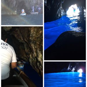 朝の7時半に集合し戻りは22時と長丁場のツアーですが、素晴らしい経験でした。全てがスムーズでした。ローマからバスで3時間(ナポリ)→高速船で50分(カプリ)→小型バスで40分(青の洞窟)→岩場の階段を徒歩で降りて小舟を待つ。小舟を待ったのはわずか20分ぐらいだったでしょうか?それは素晴らしい青色でした!洞窟の中では魚も見えましたよ。感動しました。その後昼食を摂り、カプリのお土産屋や帰路途中にもトイレ休憩を兼ねてお土産屋をみてローマ到着となりました。ガイドさんのエスコートが良かった。安心して一日過ごすことが出来ました。ありとうございました!