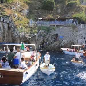 カプリ島到着後、すぐに小型船へ乗り換え。