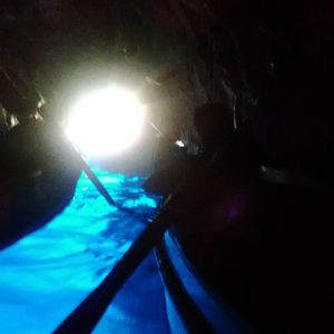 3回ボートを乗り換えて狭い入口を潜り抜けると綺麗なブルーが見れます。