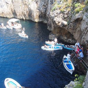 波が高く、残念ながら青の洞窟には入れませんでした。代わりに、島を一周するクルーズに振り替えとなりました。カプリ島には青の洞窟以外にもたくさん洞窟があるそうで、見所の洞窟の入り口まで近づく、なかなかエキサイティングなクルーズでした。迷路のようなカプリ島の町は素敵で、時間があればもう少し歩き回ってみたかったです。ガイドさんの説明のおかげで、歴史や現地の事情などを知ることができて良かったです。