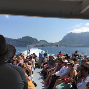 ナポリからカプリ島までの高速船は約50分ほど乗ります。最初は緩やかな揺れですがカプリ島へ近づくにつれて揺れが激しくなります。酔いが心配な方はナポリでバスを降りる手前くらいには酔い止めを飲んでおくと良いと思います。余談ですが高速船の中にはトイレがありますが、揺れもあるのか、乗船後30分しないくらいからすでに床はもちろん便座や手すりに至るまで大変汚れてしまっているので、お手洗いは乗船後早めに済ませておくことを強くおすすめします。
