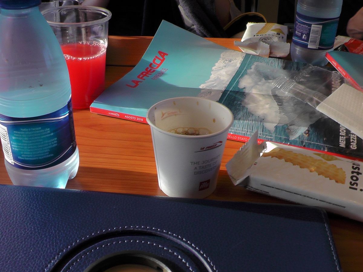 ベネツィアへの移動はほぼ自力ですが、簡潔でわかりやすいスケジュールのおかげで無事に着くことができました。行く前は本当に行けるのか不安でしたし、最低でも10分前には掲示板に表示されると言う乗り場が2分前になっても表示されず。何か見落としているのか⁉︎かなり焦りましたが、1分前に「10分」遅れている表示がでてほっとしました。(帰りは乗ってから25分止まりましたが、誰一人イライラしている様子もなく平和そのものです)せっかくなので1等席を予約しましたが、席も広いし静か‼︎チップかクッキーのお菓子、水をボトルで。ドリンクの配布もありました。2等席から大量の荷物を持った元気いっぱいの様子を伺うと、次も絶対に1等席にしようと思いました。