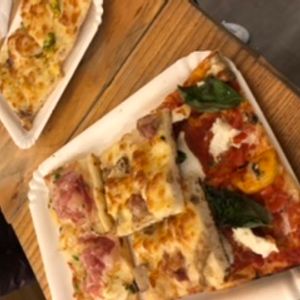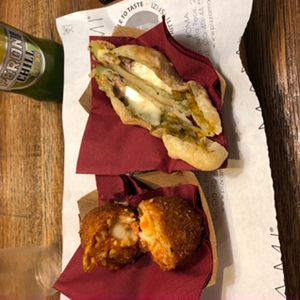 現地在住の高齢の女性ガイドさんに案内していただきました。最初に路面バスに乗り1軒目のピザ屋さんへ。1人1カット、生地がパリパリのピザですごく美味しかったです。少し歩いてナヴォーナ広場方面へ。2件目は揚げ物のお店に連れて行ってくれ、5€ほどのライスコロッケと野菜のフライを食べました。最後はジェラート屋さんで2種類のアイスを。1番小さいサイズでしたがボリュームがあり冬場でしたので少し寒かったです。