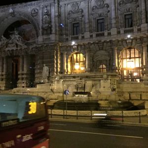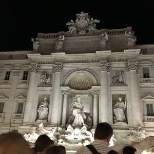 それぞれの名所のイルミネーションはバスに乗って見るだけなので動いている時の写真は上手く取れず残念でした。一度だけバスから降りられたのはトレビの泉で昼間とは又違って素敵でした。昼間より人が多くてびっくりしました。コインも投げられたので又ローマに行けるかも。夕食は9時半過ぎ位からなので空腹と眠かったのですが半分楽しみにしていたので美味しくて良かったです。旅行中でこの食事が塩気も丁度良くて一番美味しかったです。前菜からデザート迄自分で選べるのが良かったです。ワインも付いていて料金からして満足です。ガイドさんにも親切にして頂きありがとうございました。