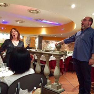 オペラ歌手はテーブルの前で名曲を披露して下さる。