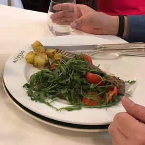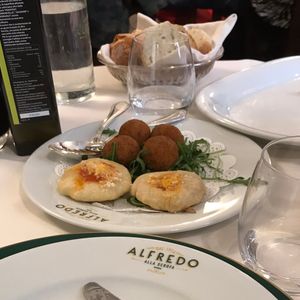 5月2日のお昼にセットメニューを予約して行きました。有名店なのでほぼ満席の状態だったので予約出来て良かったです。飲み物や前菜、名物のフェットチーネ、肉料理、デザートまで付いていてとてもお得感がありました。フェットチーネはとても美味しいのですが、一人前を一人で食べるのは少しくどいので、セットの半人前はとても良かったです。それと前菜の盛り合わせの中にあったモッツァレラも最高でした。
