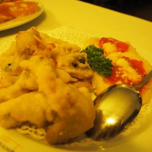 カンツォーネ観賞がメインで食事は期待していませんでしたが、日本人が思うほぼフルコースのメニューで私は大変美味しいと思いました。カンツォーネとオペラは男女1名ずつの歌手とピアノの3人でしたが、この2人の歌手はこんな(失礼)レストランで歌わせておくにはもったいないぐらい素晴らしい歌声でした。