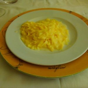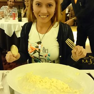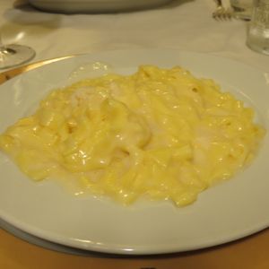 今まで食べてきたカルボナーラとは全く違うチーズが濃厚なお味でした。ディナーに訪れましたが店内はほぼ満席で、給仕の方も忙しそうでした。周りの欧米人も皆カルボナーラを注文していました。日本人は私たちだけでした。