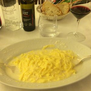 隠し味はなんだろう?とウエイターさんに聞いてみたところ、味付けはバターとチーズだけだとか。さすが、本場はチーズもバターもクオリティが違うのですね。こっくりした味付けなのにこってりではない、文字だけではとても表現できない絶妙なお味でした。