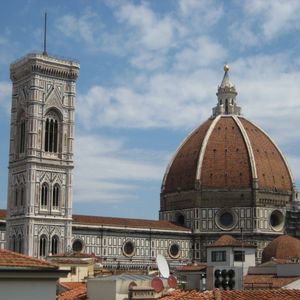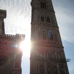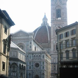 ローマから朝6時半ころのユーロスターに乗り、いざ!!フィレンツェへ!!車内通路を挟んだ隣に座っている日本人カップル発見!!「ひょっとしてこの人たちも・・・」と思い声をかけたら、案の定同じツアー♪しかも、私たちと同じ新婚旅行者~♪電車の中から盛り上がりました♪フィレンツェ到着。集合時間まで時間があったので、マックカフェでカプチーノ買い~の、駅前の芝生になっているところで一服♪鳩にクッキーあげてまったり♪9時ちょい前、集合場所のADUA広場へ。到着してからのこのゆったりした時間がまたよかった♪ガイドは日本人のイトウさん♪フィレンツェの歴史など丁寧な説明を聞きながらドゥオーモまで歩きました♪。イトウさんの聞きやすい説明、感動しまくりました♪イタリアの歴史をもっと知りたいと思いました。