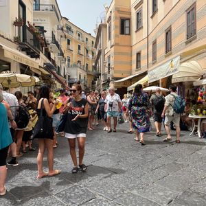 ローマのテルミニ駅からイタリア高速列車「イタロ」でナポリを往復、ナポリから日本語ガイド付きの専用車で、ポンペイ・アマルフィを観光しました。ポンペイ遺跡では、イタリア発祥のピザ窯やテルマエ・ロマエでも有名な古代ローマの浴場等を見学しました。ポンペイからアマルフィへの移動で、ソレント半島のメータとポジターノで途中下車しましたが、都度ガイドさんがツーショットの写真撮影をしてくれ助かりました。アマルフィは、シーズンオフで休業の店も多かったですが、イルターリでランチし、パンサで名物レモンケーキをテイクアウトしました。ローマ往復で効率的にポンペイ・アマルフィ観光するのに良いツアーだった感想です。