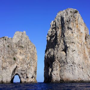 当日はローマ地下鉄が工事で運休していたため、テルミニ駅近くのホテルから30分ほど歩いて集合場所のポポロ広場へと向かいました。20名ほどの参加者を乗せた快適な大型バスで一路ポンペイ遺跡へ。途中、サービスエリアを兼ねたようなお土産物屋さんでトイレ休憩。スタッフさんたちも商品の説明は丁寧にしてくれますが、決してしつこく営業するわけでもないので、のんびりとコーヒーブレイクを楽しめました。ポンペイ遺跡は巨大なので一部のみの観光となりますが、とにかく暑かったです。帽子・水は必須です(水はバスの中でもお土産物屋さんでも買えます。全行程を通じてエアコンの効いたバス内に滞在する時間が長いので、それほど暑さに苦しむことはありませんでしたが、水分補給は怠らないで下さい)。続いてソレントの"Tasso"というレストランで昼食。メニューはサラダ・パスタ2種・ティラミス。ドリンク(別料金)はガイド様が各自の希望を取りまとめて注文してくれます。レストランから徒歩でソレント港へ向かい、船でカプリ島へ。残念ながら強風により青の洞窟には入れない代わりに、参加者だけでモーターボートをチャーターしてカプリ島一周クルージングへ出発。これがとても楽しい。島周辺に点在する数々の奇岩を間近に見ることができ、蒼い地中海に彩られた自然の景観美は言葉にできないほど素晴らしい。クルージングの後はカプリ島の港周辺で20分ほどの自由時間の後、船でナポリ(帰路)へ。青の洞窟には数日後に個人で訪れた際に入ることができ、とても感動しましたが、もし最初から青の洞窟に入れた場合、短い休暇でイタリアに来ている日本人はこのクルージングに参加することなく、カプリ島を再訪しない方も多そうなので、これはこれで良い機会に恵まれたと改めて感じました。