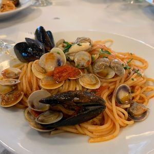 サイトウさんという日本人の参加者の為のガイドさんがとても気さくで面白い方でした!行きのバスからローマの城壁や太陽高速道路についてお話してくださいました。ナポリ観光はバスからの車窓見学でしたが、サイトウさん曰く、いつもとバスの運転手が違うおかげで幸運にも普段通らないナポリの市街地も見学できました。昼食では、ここのレストランはピザが美味しいからと、オススメのピザをいただきました。ピザはとても美味しかったです。(メインの魚料理はまずまずでした)