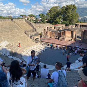 日本人で参加したのは私たち2人のみで複数の国の方々とバスに混載で現地に向かいます。ポンペイまでは約3時間、バスの中ではイタリア人のガイドの2人が付き添い、ポンペイでは専属ガイドが遺跡の説明や当時の文化など、英語がわかる方であれば十分に楽しく、充実した見学となります。後半はアマルフィのはずが日暮れ時間の関係でポジターノとなりました。アマルフィまで行っていたら夕暮れになっていたので臨機応変な対応でよかったです。