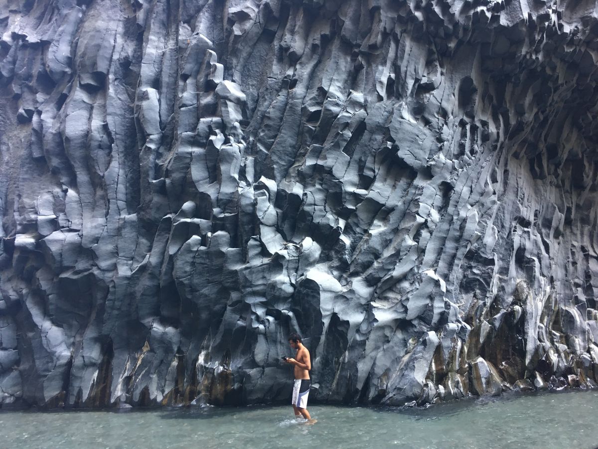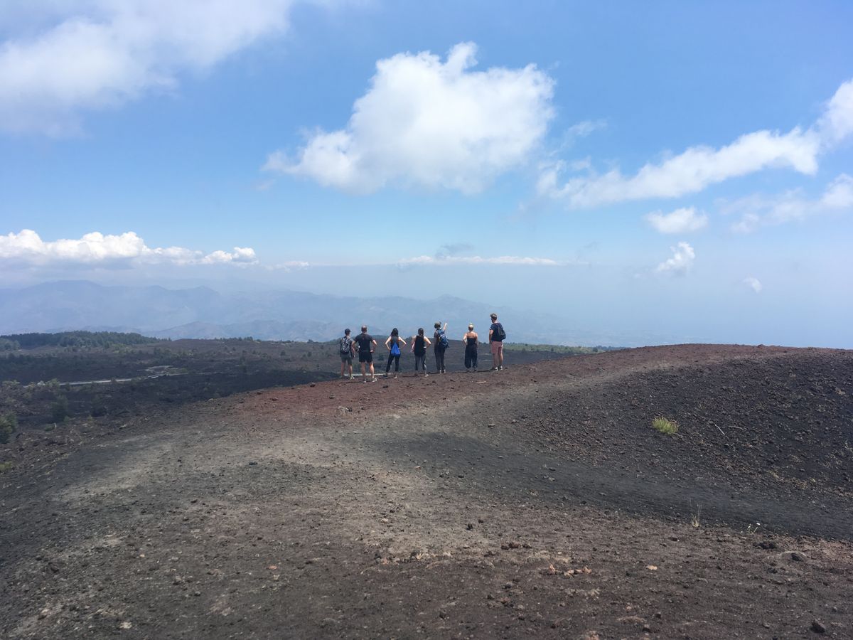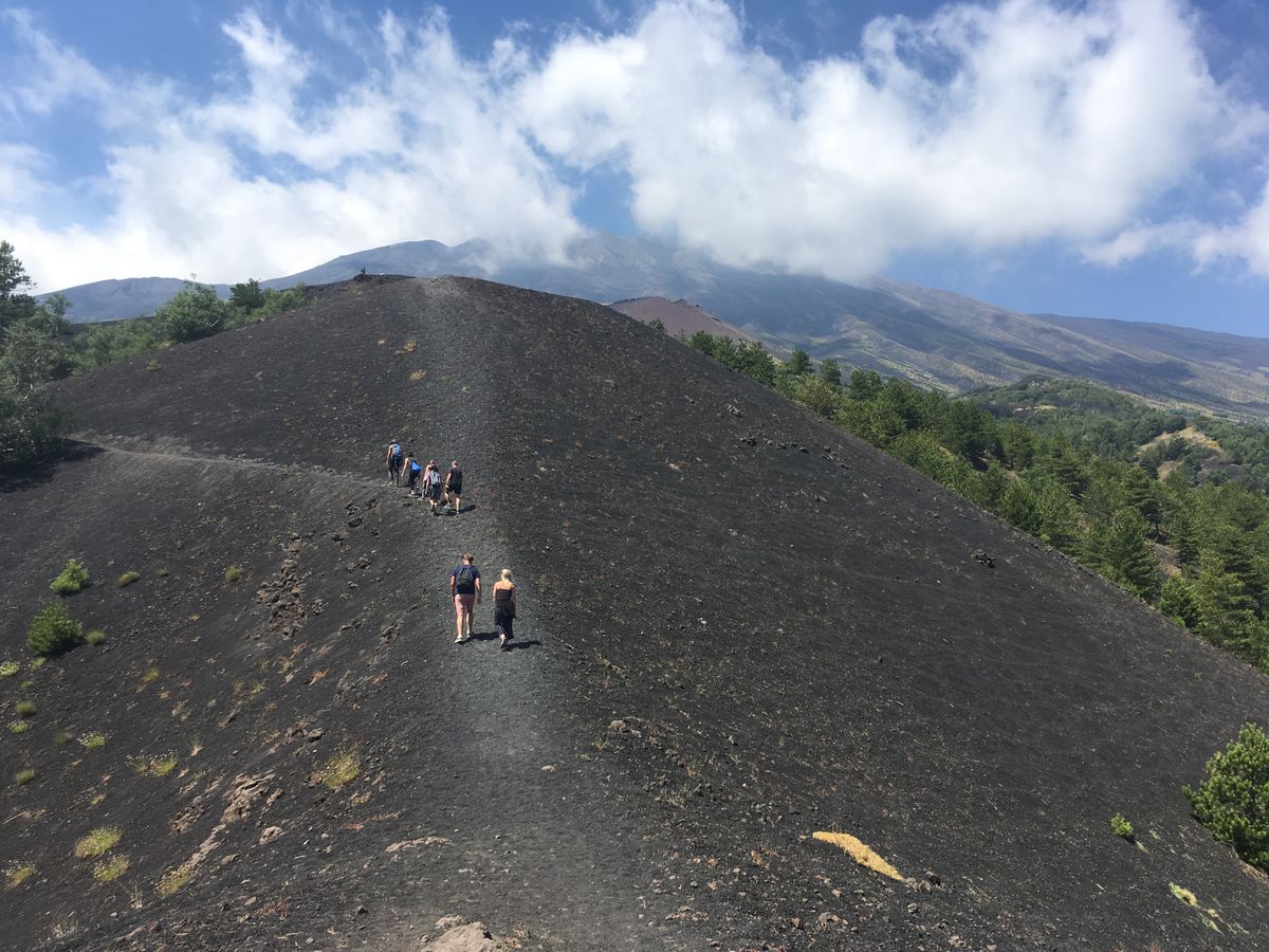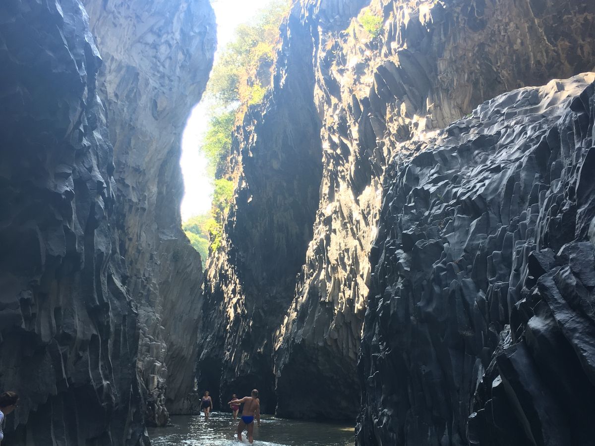 ツアーの全体人数はガイド1名に対し参加者7名でした。一日中歩くことになるので水は必須でした。エトナ火山を始め、火山によってできた自然環境や地形などのスポットも見て回ることができ、個人で一日で回るのは無理なのでツアーに参加して大変良かったです。1つ残念だったのが、大変珍しい峡谷になっている川に行くことは事前に知っていましたが、川の中にまで入れることを知らされておらず(特に表記もなかったです)、水着を用意してなかったため奥まで行くことができませんでした(行くとすると腰まで浸かることになります)。本当に感動的な場所だったので惜しかったです。ガイドさんはエトナ火山周辺出身の方で、本当に詳しくまたエトナ火山が大好きなのが伝わってきましたし、とても親切な方で唯一の日本人の私を気にかけてくださいました。気軽に質問にも答えてくれます。お昼ごはんも大変美味しかったです。ワインも飲めたのが良かったです。ペースが辛いということもなく、全体的に大変楽しめました。とってもオススメです。