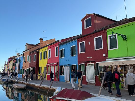 カラフルな家並みと、レース編み(メルレット)で有名なブラーノ島。まるで絵本の世界のような光景は、漁師が霧の中や遠くからでも自分の家を見分けられるために工夫して出来上がったといわれています。