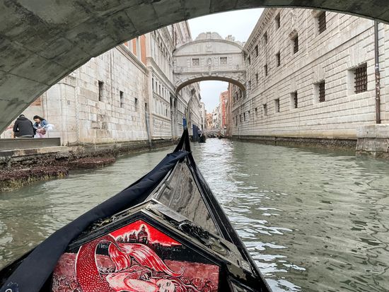 ホテル・ダニエリ(Hotel Danieli)前からゴンドラに乗船し、いざ出発!名所「ため息橋」の下をくぐることができるコースです。かつては牢獄に入る囚人たちがため息をつきながら渡った橋ですが、今やヴェネチア有数の人気スポット。趣ある細い水路をゴンドラで進みながら、ヴェネチアらしい情緒をぜひお楽しみください。