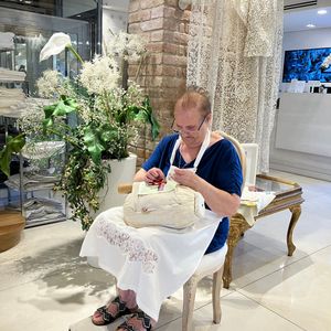 当日朝、日本人ガイドさんが宿泊先のホテルまで迎えに来てくれました。水上バスのチケットの買い方も教えていただき、先ずはブラーノ島に出発。レース編みの島としても有名です。実際に編んでいるところを見学させていただいたり、素晴らしい作品を見せていただいたりしました。またこの島は、カラフルな壁の家々でも有名です。ゆっくり時間をかけて島内を散策しました。