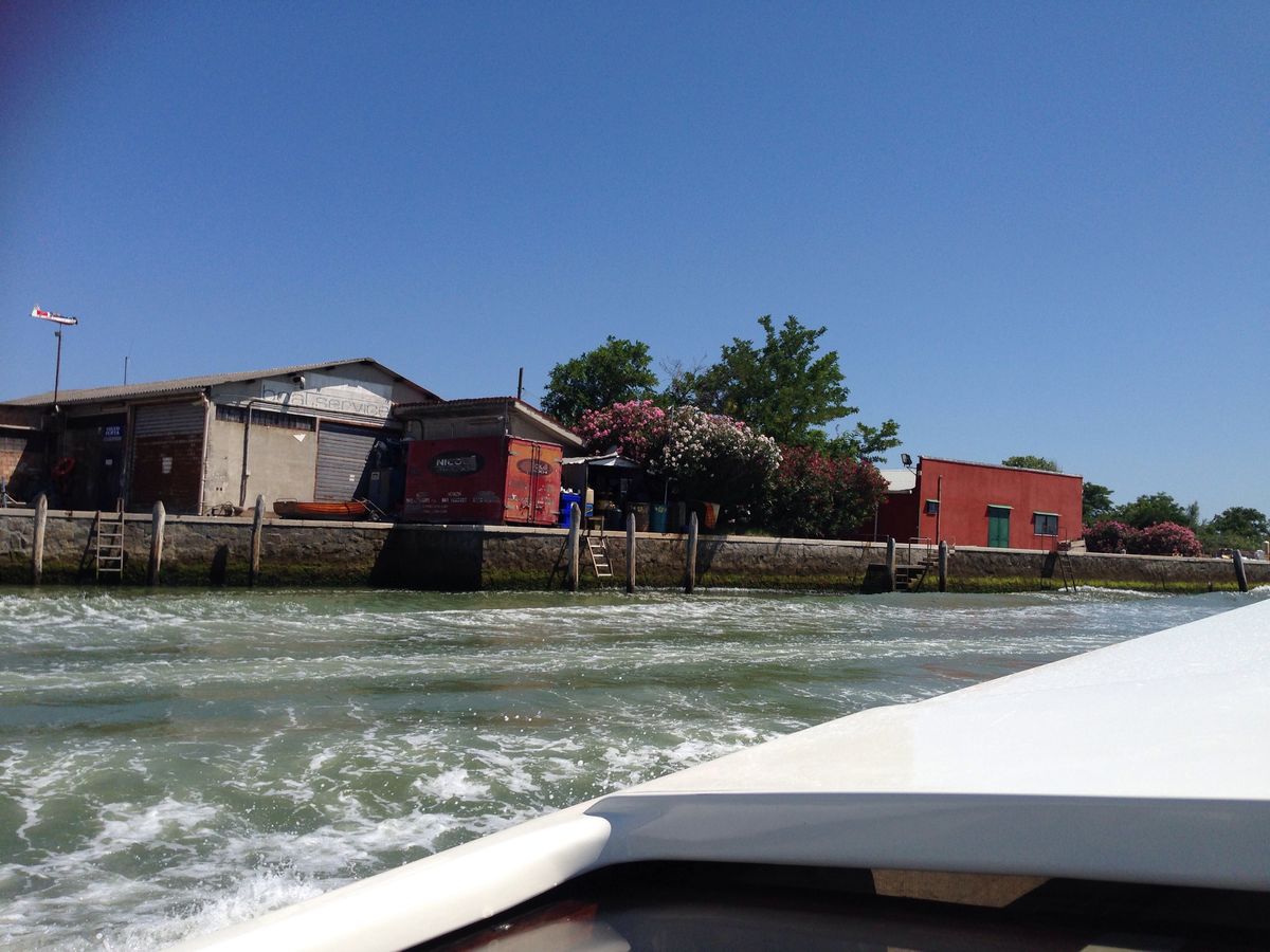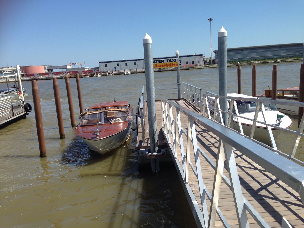 待ち合わせの場所の地図は正確でしたが、指示されたボート乗り場の名称はどこにも表示がなく、若干不親切でした。船着き場には特に係員がいる訳でもなく乗客の情報を把握しているのは、ボートの船長だけのようでした。幸いにも同じボートの予約をもったカップルがいたので若干安心しました。空港への航路はベネチア市内の運河を抜けると一直線で快適な船旅でした。ただし雨が降っていると若干つらいかもしれません。