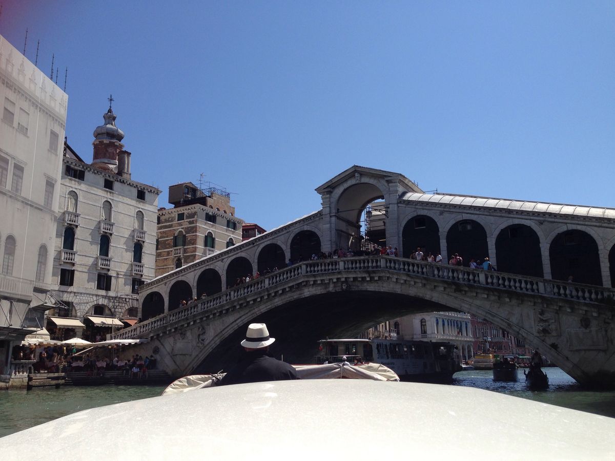 リアルト橋を見ながら、水上からエントリーは、気分が盛り上がります。
