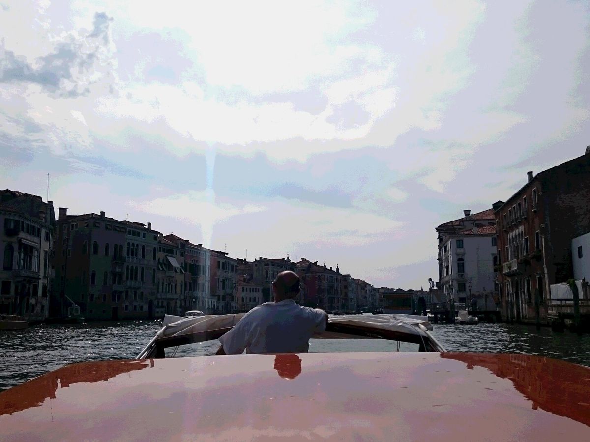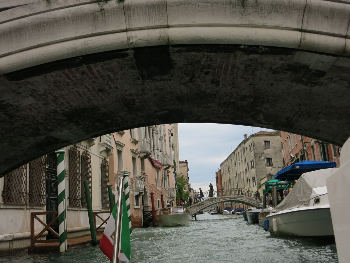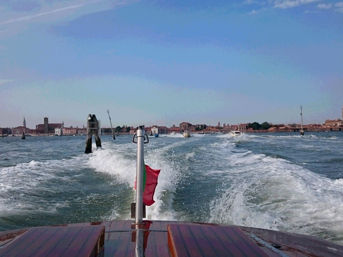 当日は、出発時間の10分前には船が到着し、近くにいた船乗りのお兄ちゃんが笑顔で荷物を運んでくれて、とても心地よい出発となりました。船はとてもきれいで乗り心地がよく、街の中を通りながら飛行場に向かいました。私はヴェニスでゴンドラに乗らなかったのですが、細い水路を通ることができたので、気分を味わうことが出来ました。