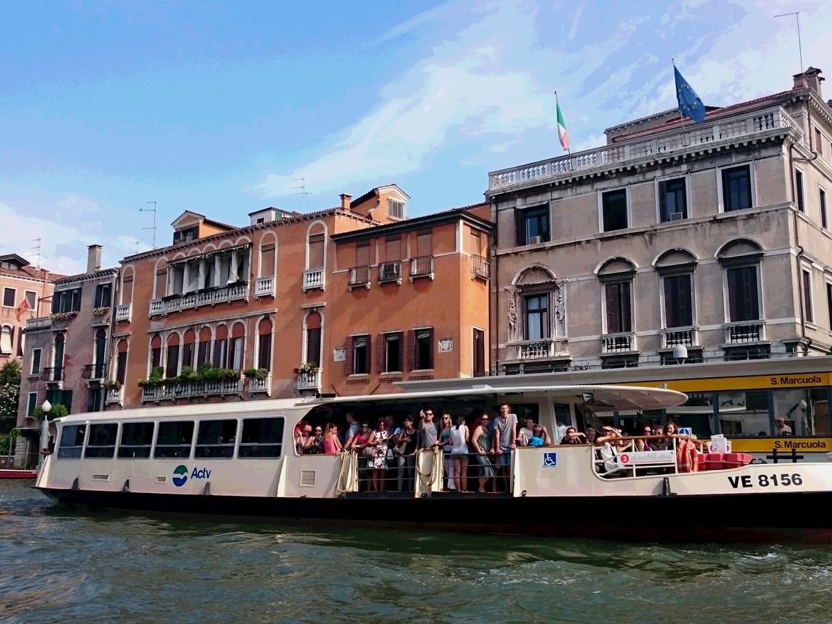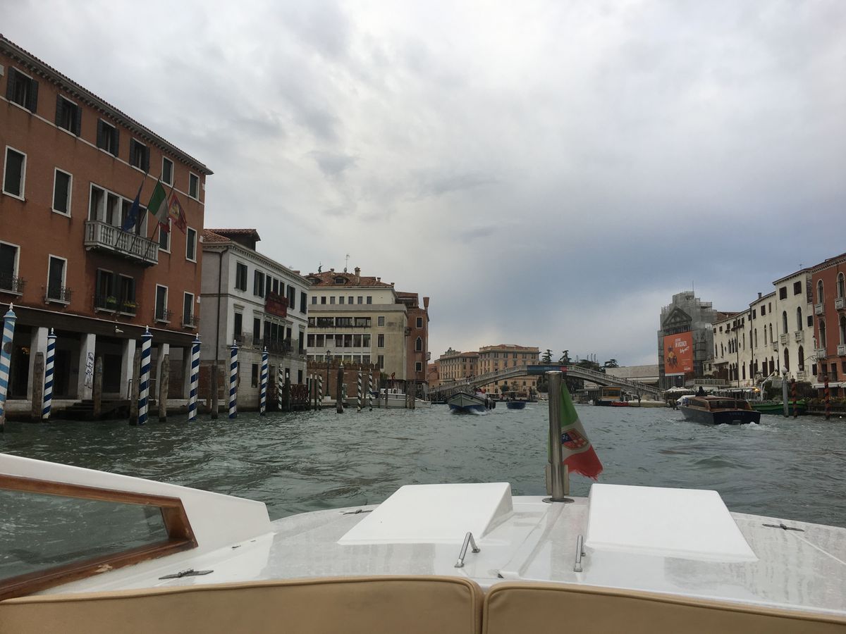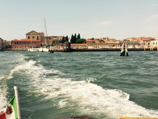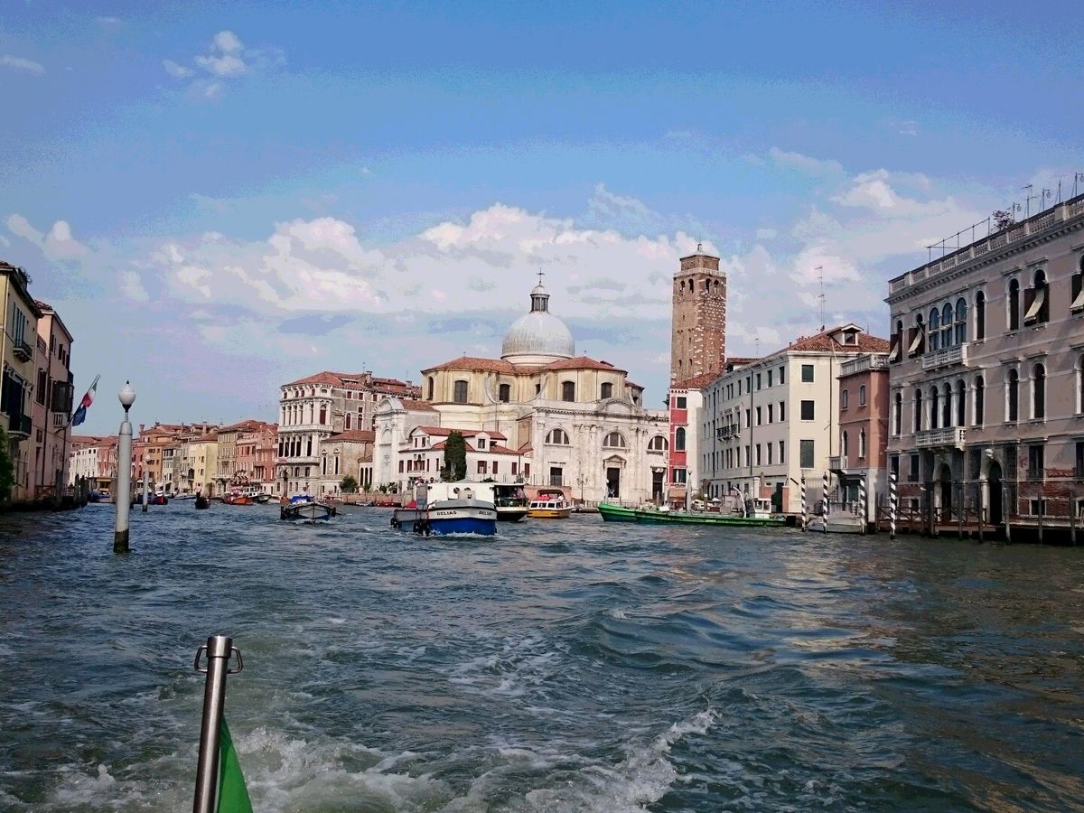 当日は、出発時間の10分前には船が到着し、近くにいた船乗りのお兄ちゃんが笑顔で荷物を運んでくれて、とても心地よい出発となりました。船はとてもきれいで乗り心地がよく、街の中を通りながら飛行場に向かいました。私はヴェニスでゴンドラに乗らなかったのですが、細い水路を通ることができたので、気分を味わうことが出来ました。