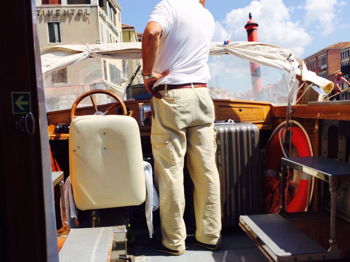 乗り合いバスよりもリッチな気分でモーターボートでスイスイ、ホテル最寄りのポートまで送ってくれます。私はアメリカ人のご老人カップル1組、新婚カップル1組さんと乗り合いで計5人で乗りました。ボートの開閉式屋根から顔を出してベニスの海を渡ると、気分はまるで007でした!