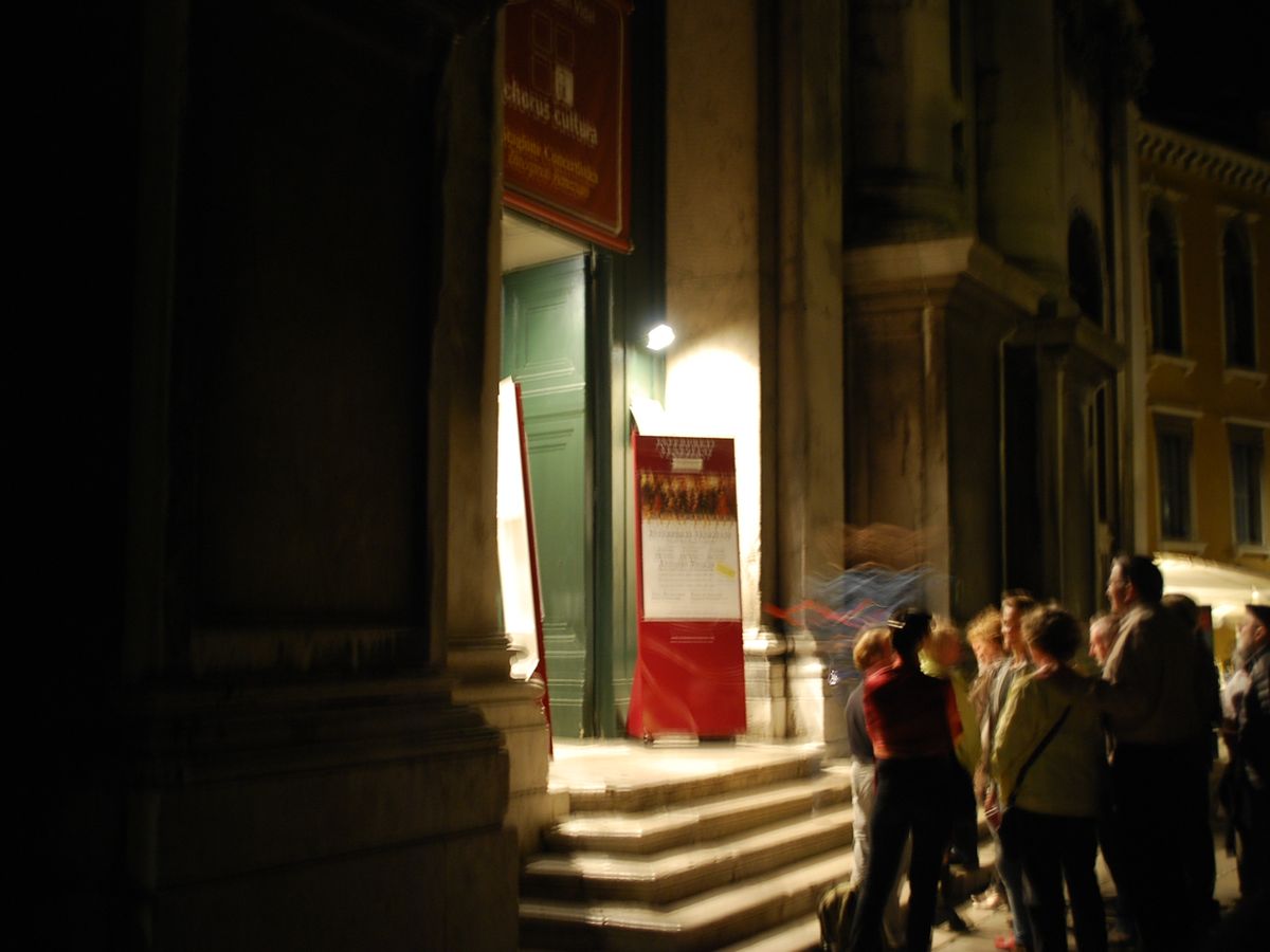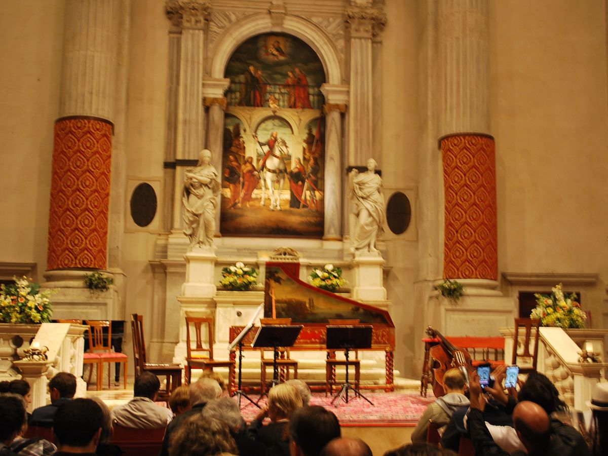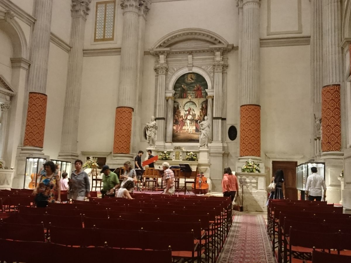 21:00スタートで、20:20くらいについたのですが、すでに行列でした。30分くらいには入場開始で前のほうの席をとれました。並んでいるときに、寄付の人が日本語で話しかけてきましたがスルーしました。演奏は、すばらしいの一言です。その前の週に日本公演した奏者たちでした。教会の雰囲気ともマッチしていて、ヴェネツィア観光では外せないと思います。また、ヴェネツィアを訪れたときには必ず行くと思います。
