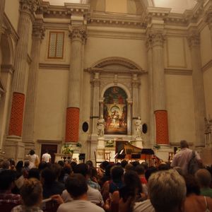 2014年8月にミラノからベネチアに電車で訪問しました。魅惑的なベネチアの風景を楽しみながら夜、教会にたどり着きました。ホテルの人に場所は聞いて迷わず行けました。教会の中は、外国の方が多数おられ日本人もちらほらおられました。お客さんで満席でした。