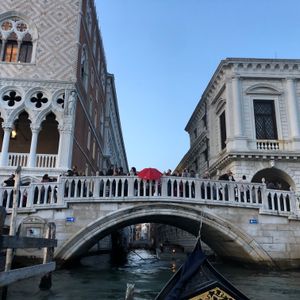 旅行の予定を立て始めた当初は乗るつもりは無かったのですが、友人に勧められてゴンドラに乗ることに。ゴンドリエーレは英語は片言でしたが陽気な方で、鼻歌交じりで細い水路をギリギリの角度で曲がる技を披露してくれたり、綺麗な窓の装飾を教えてくれたりと、とても楽しい30分でした。