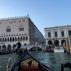 ゴンドラ遊覧では歩行しながら見るより低い位置からヴェネチアの景観を楽しめとても良かったです。また、貸切なので気兼ねをする事なく楽しめました。ただ、ゴンドラの船頭さんとの楽しい会話が出来るのではないかと期待していたのですが、ゴンドラに乗っている位置の関係と言葉がうまく通じなかったので叶わず残念でした。